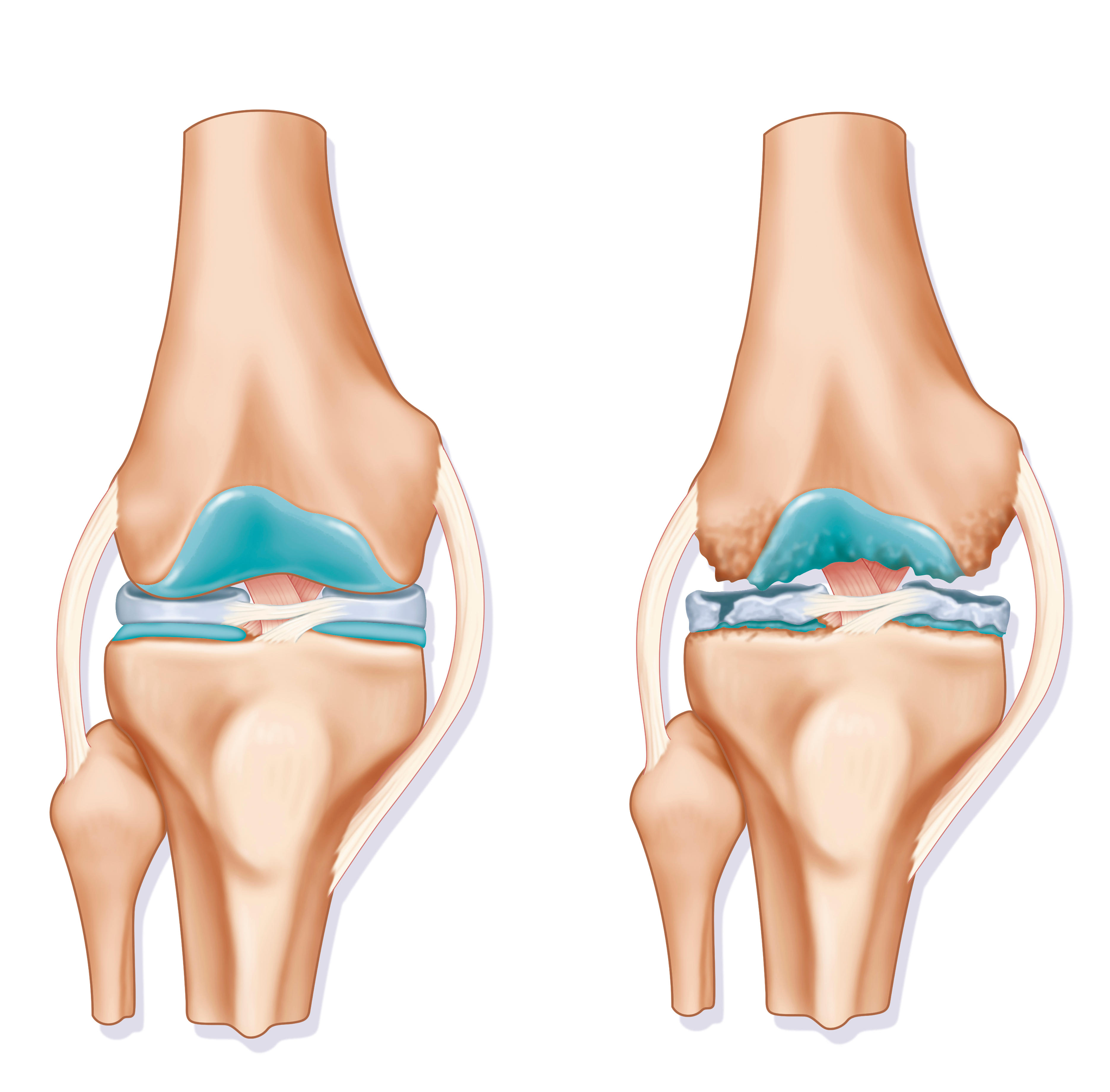Whereas other parts of our body heal back to their original state after an injury, articular cartilage and the meniscal cartilage do not. This means the damage to these structures can accumulate over time. The articular cartilage can become rougher and thinner, and the meniscus frayed and torn. This results in more friction and less cushioning between the ends of the bones and in the joint in general.