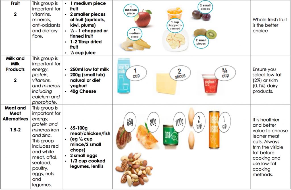 table below provides information about each food group and the recommendations on the number of serves from each of the food groups that you